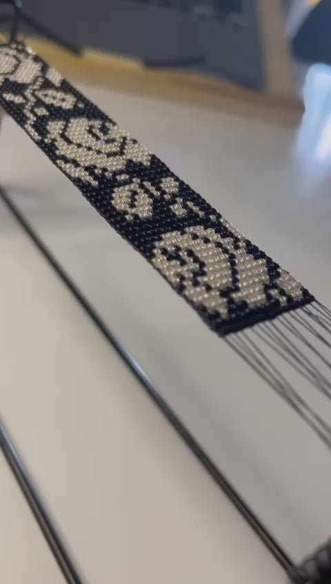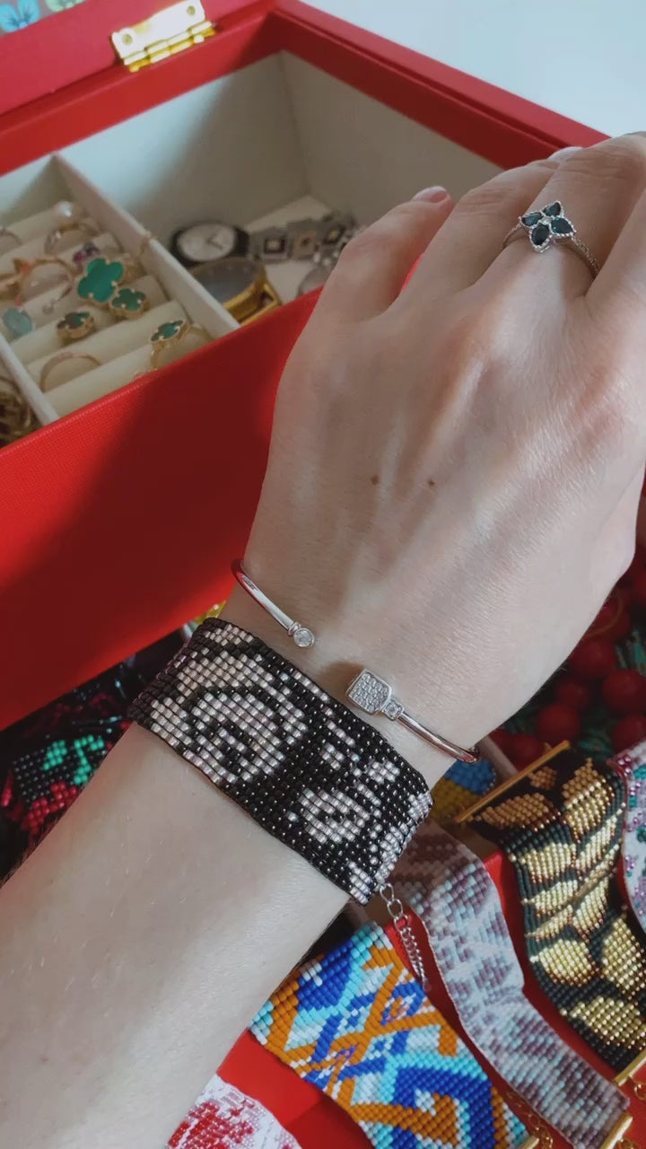 Handmade beaded bracelet with Ukrainian pattern “Black Rose”